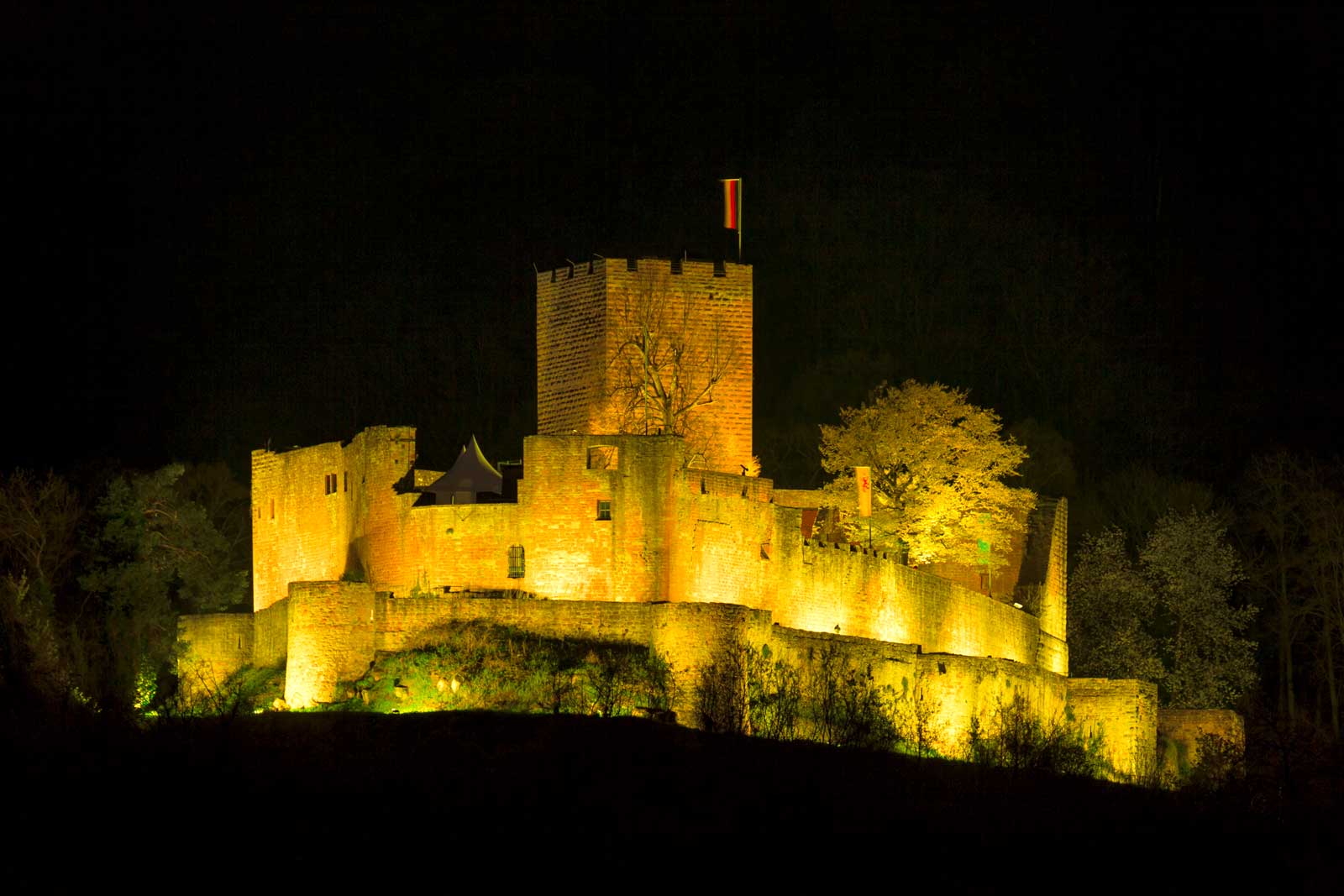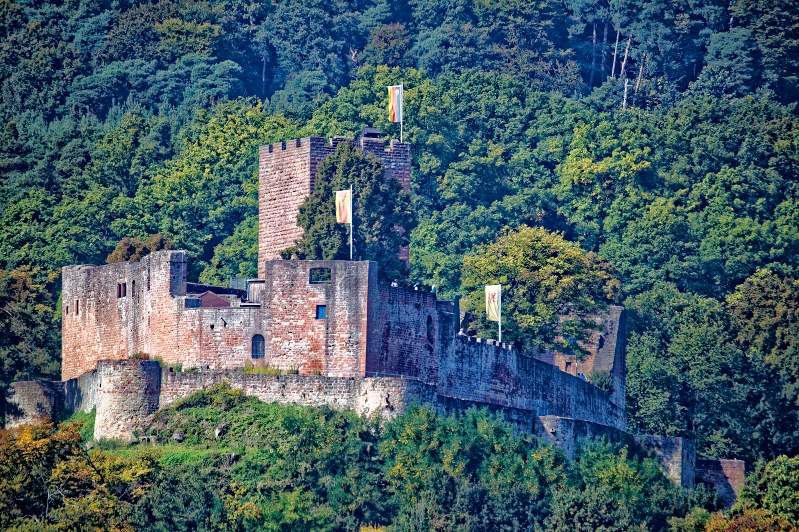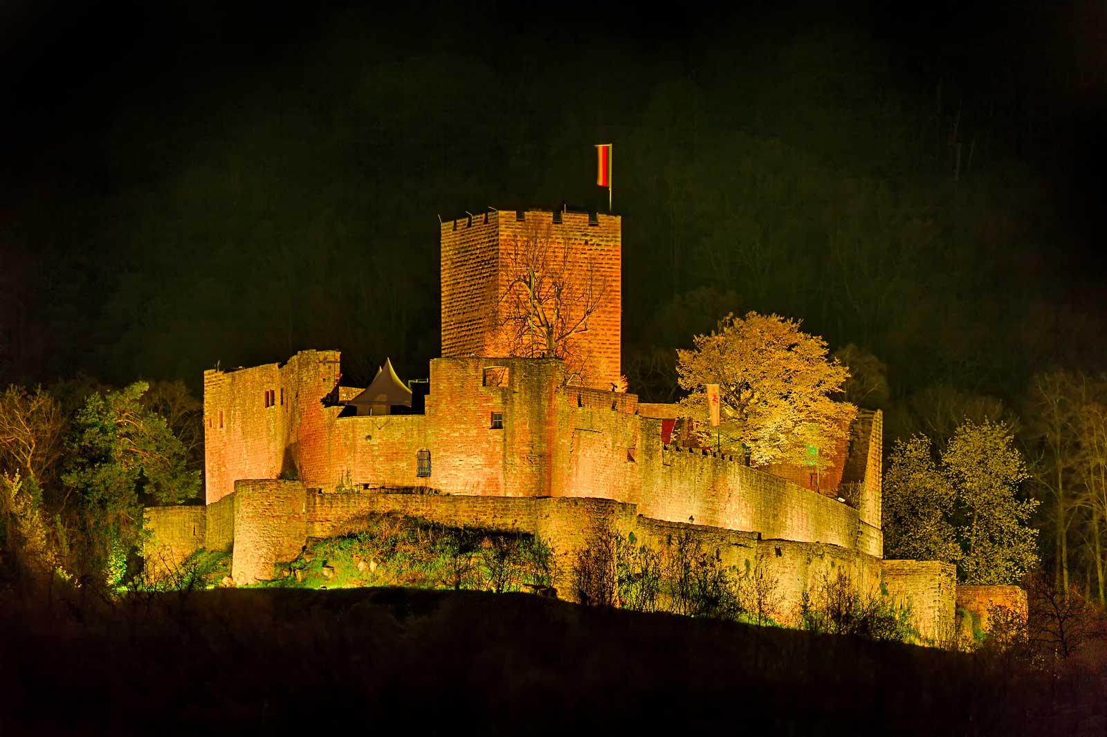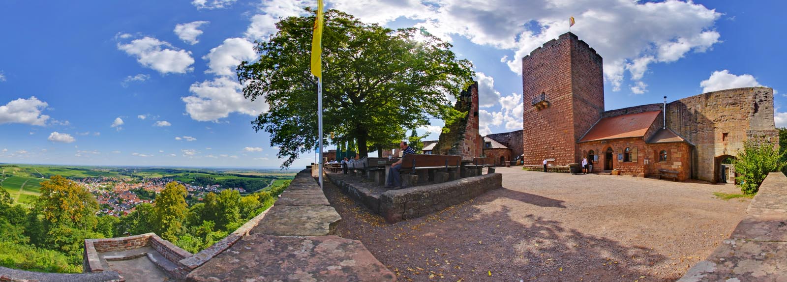 Dazu zählt vor allem der stolze Bergfried, der höchste und besterhaltene der Pfalz. Von seiner 23 Meter hohen Plattform aus öffnet sich ein weiter Blick über die Pfälzer Ebene bis zum Odenwald und den Erhebungen des Schwarzwaldes.