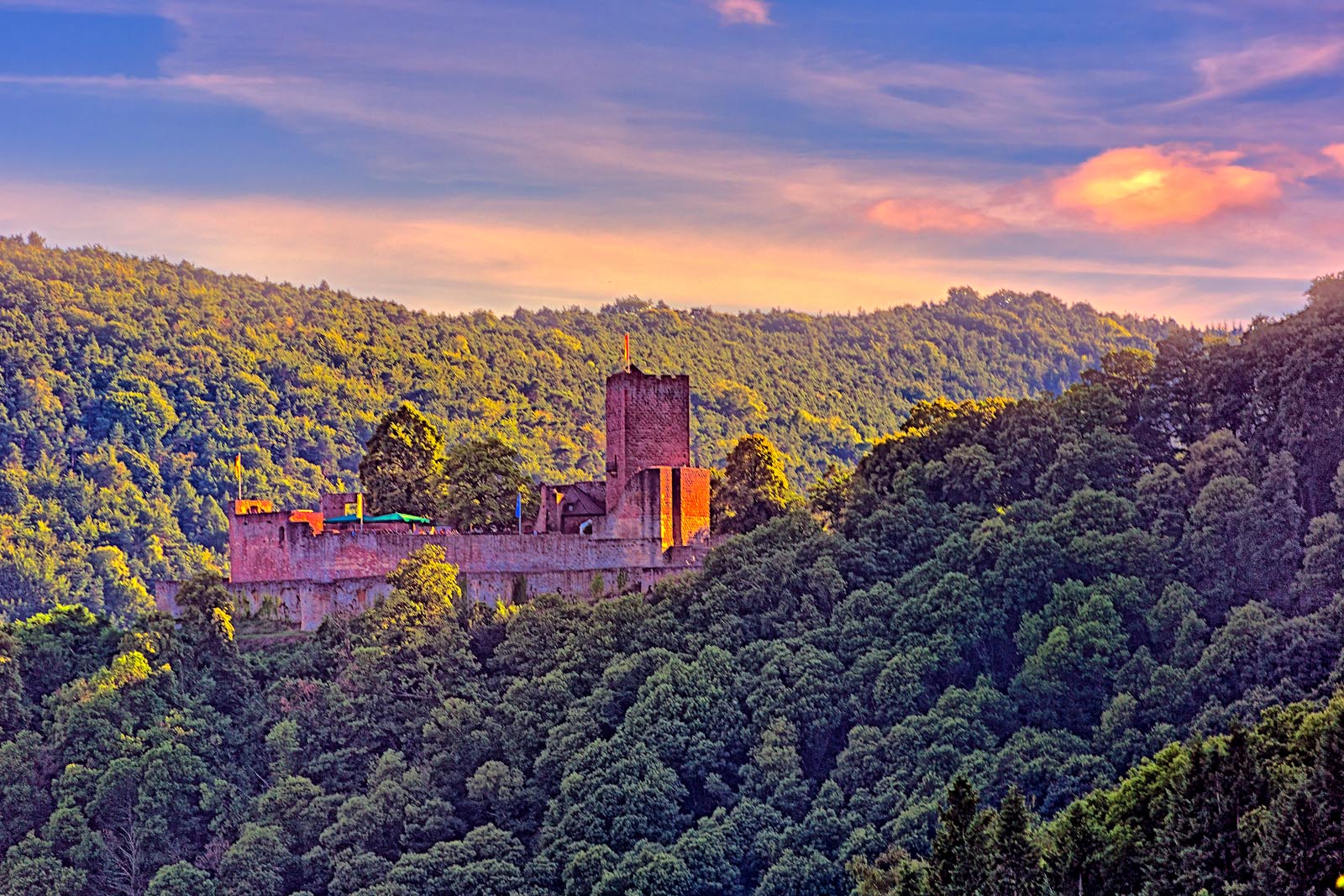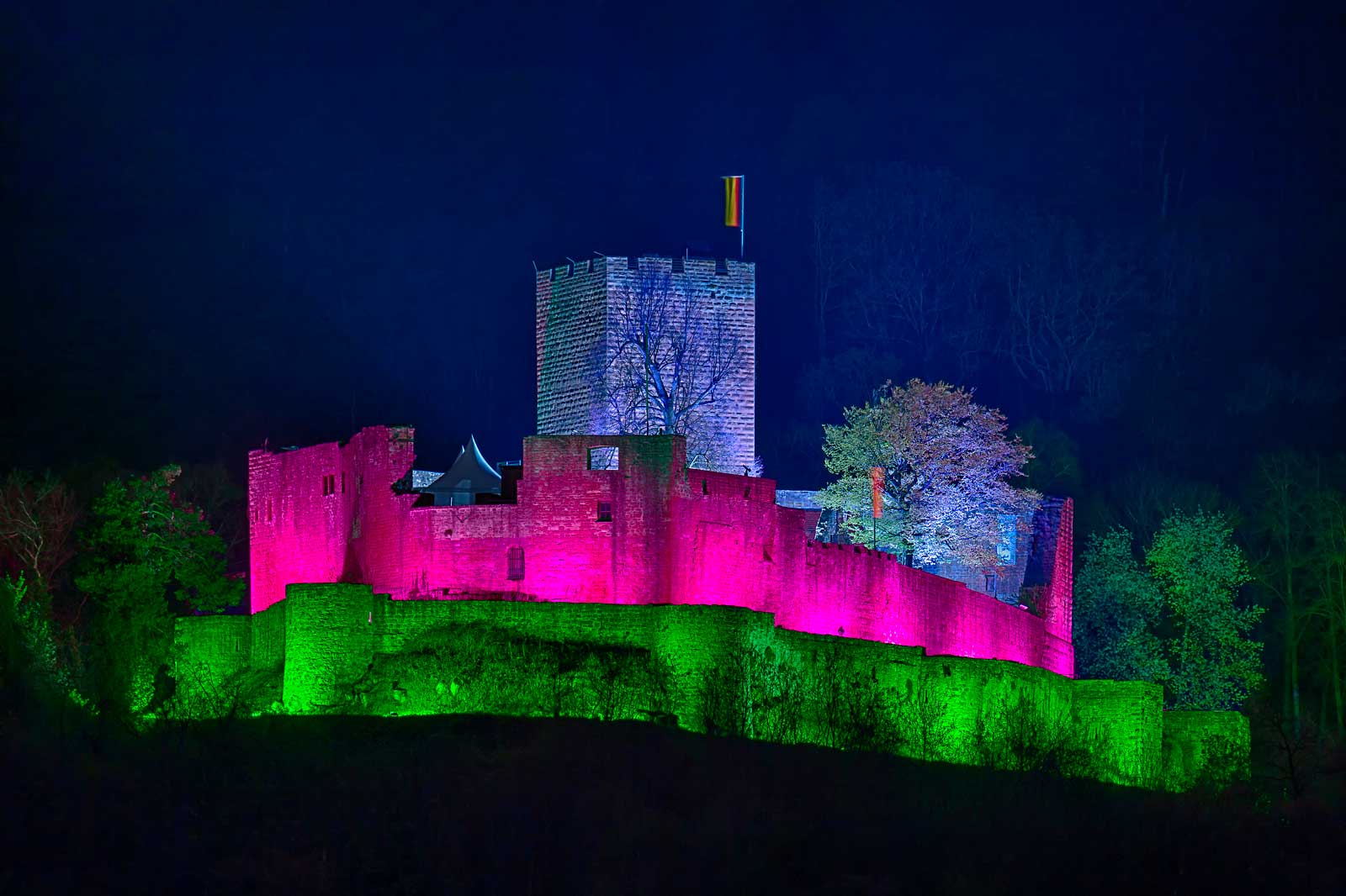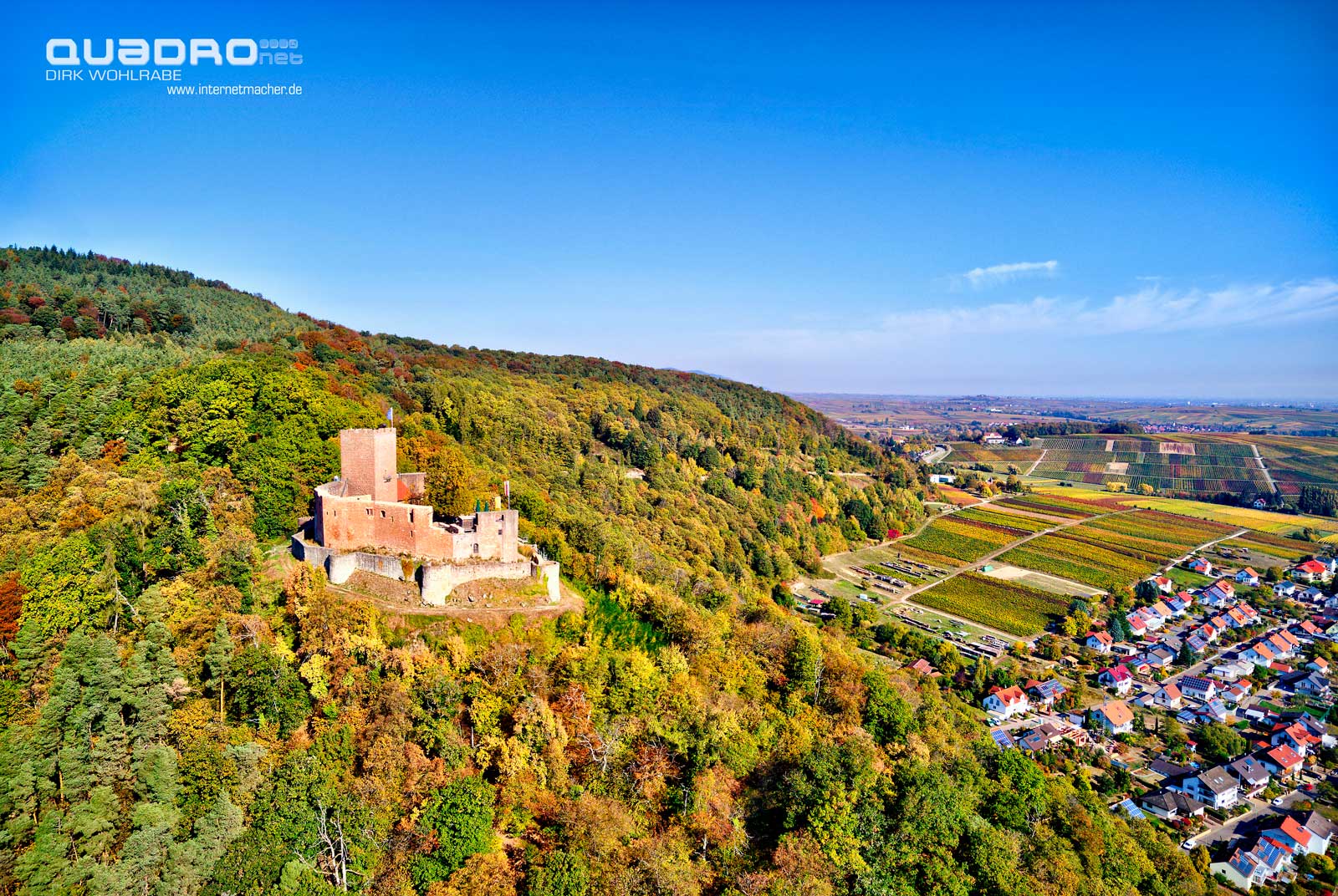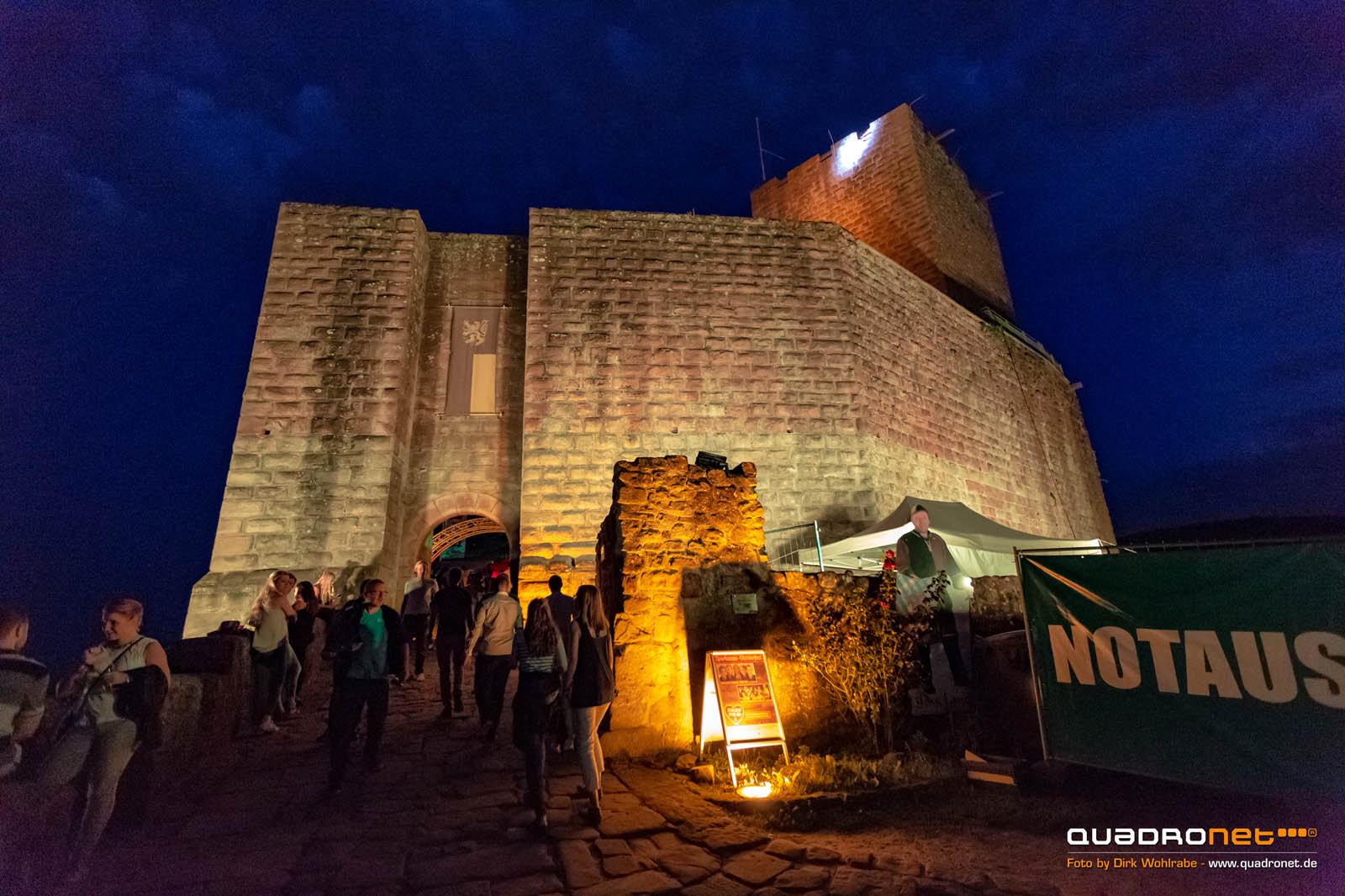 Dazu zählt vor allem der stolze Bergfried, der höchste und besterhaltene der Pfalz. Von seiner 23 Meter hohen Plattform aus öffnet sich ein weiter Blick über die Pfälzer Ebene bis zum Odenwald und den Erhebungen des Schwarzwaldes.