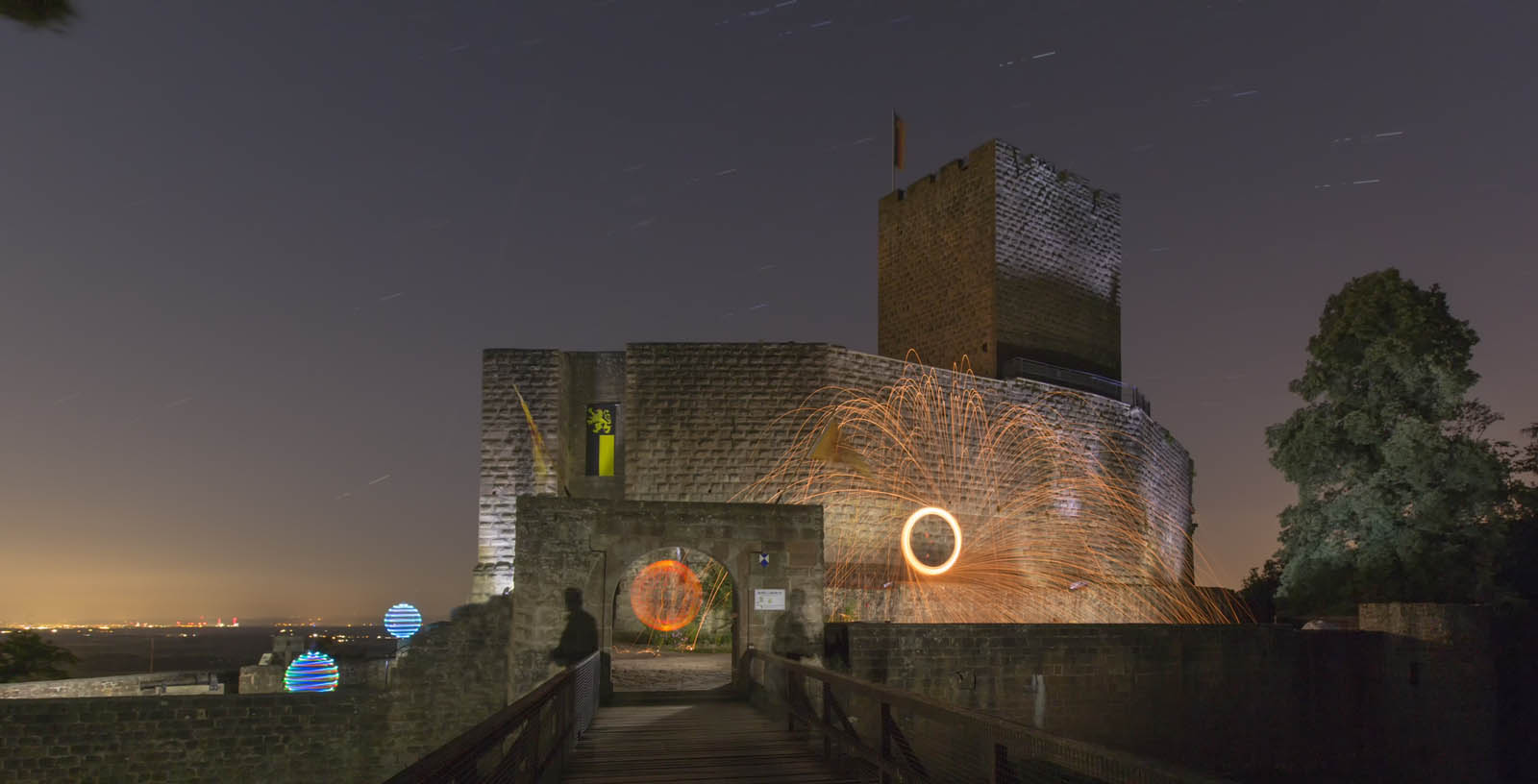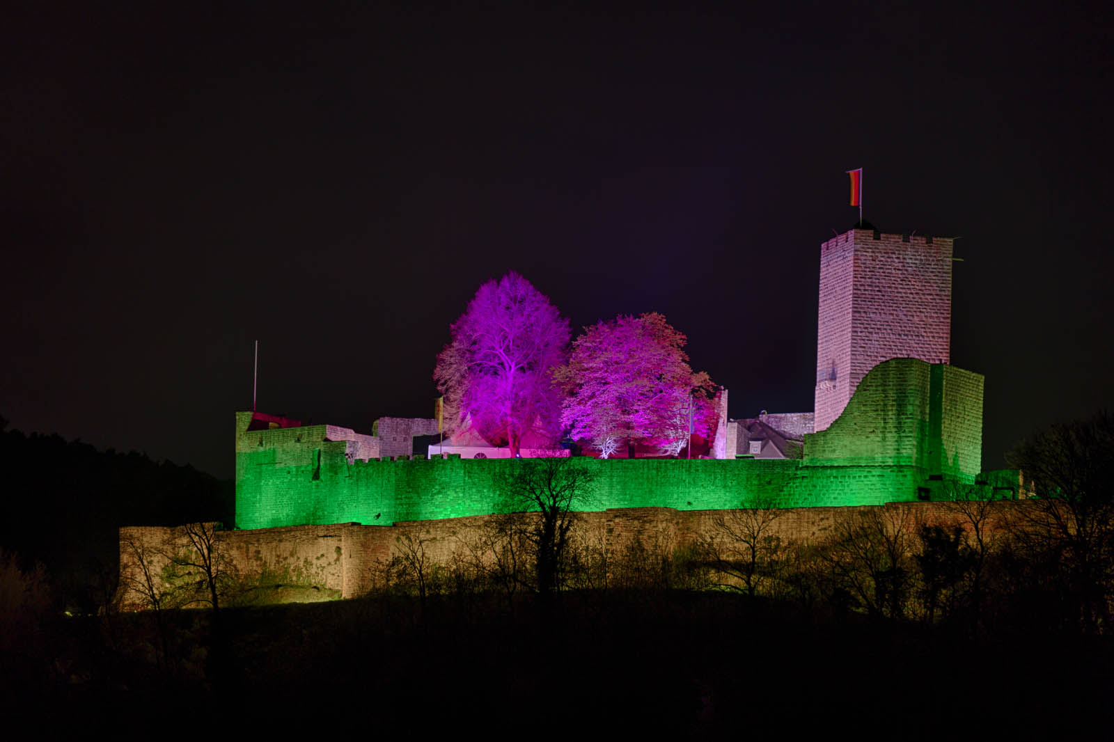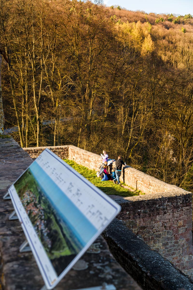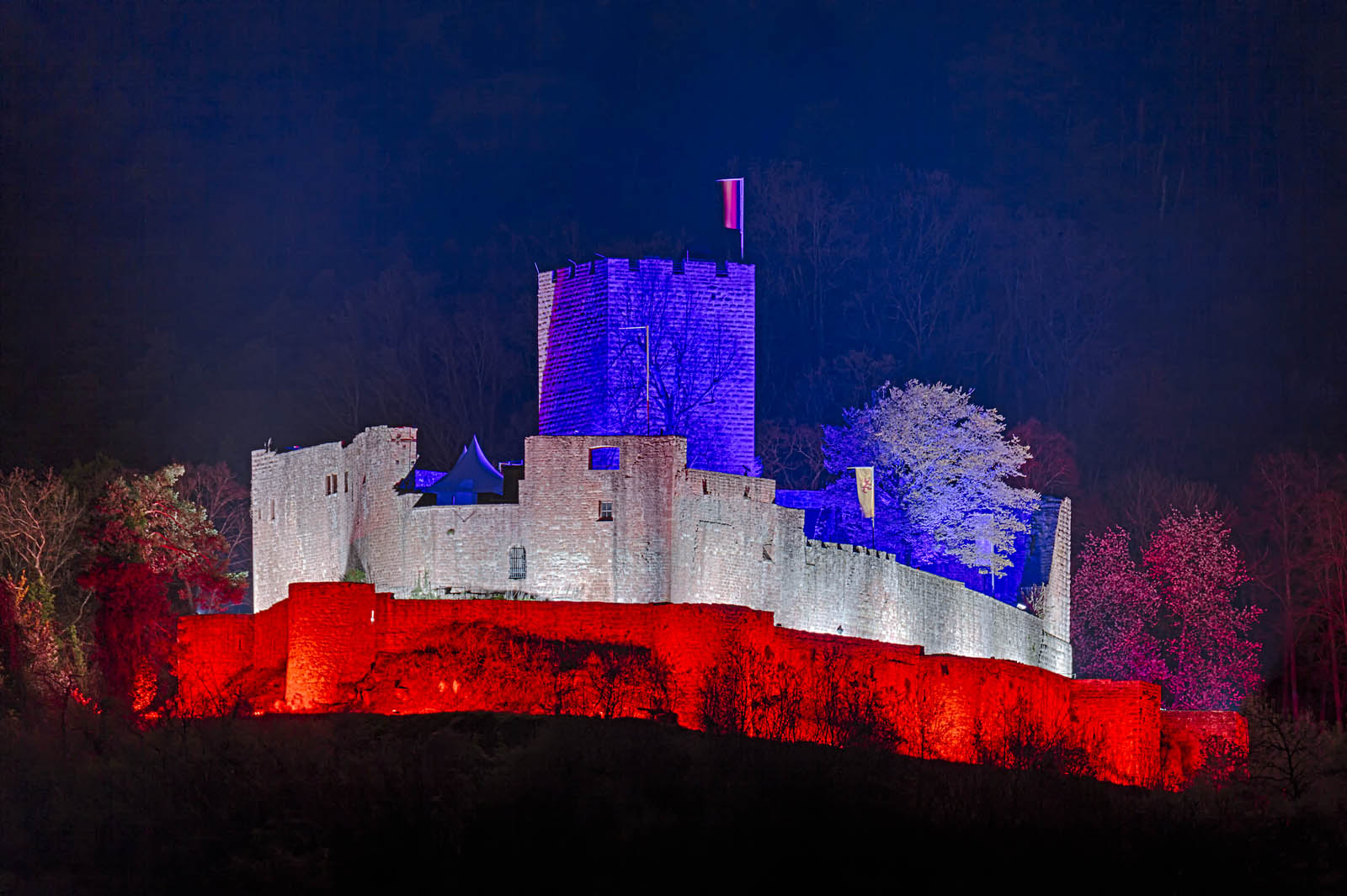 Dazu zählt vor allem der stolze Bergfried, der höchste und besterhaltene der Pfalz. Von seiner 23 Meter hohen Plattform aus öffnet sich ein weiter Blick über die Pfälzer Ebene bis zum Odenwald und den Erhebungen des Schwarzwaldes.