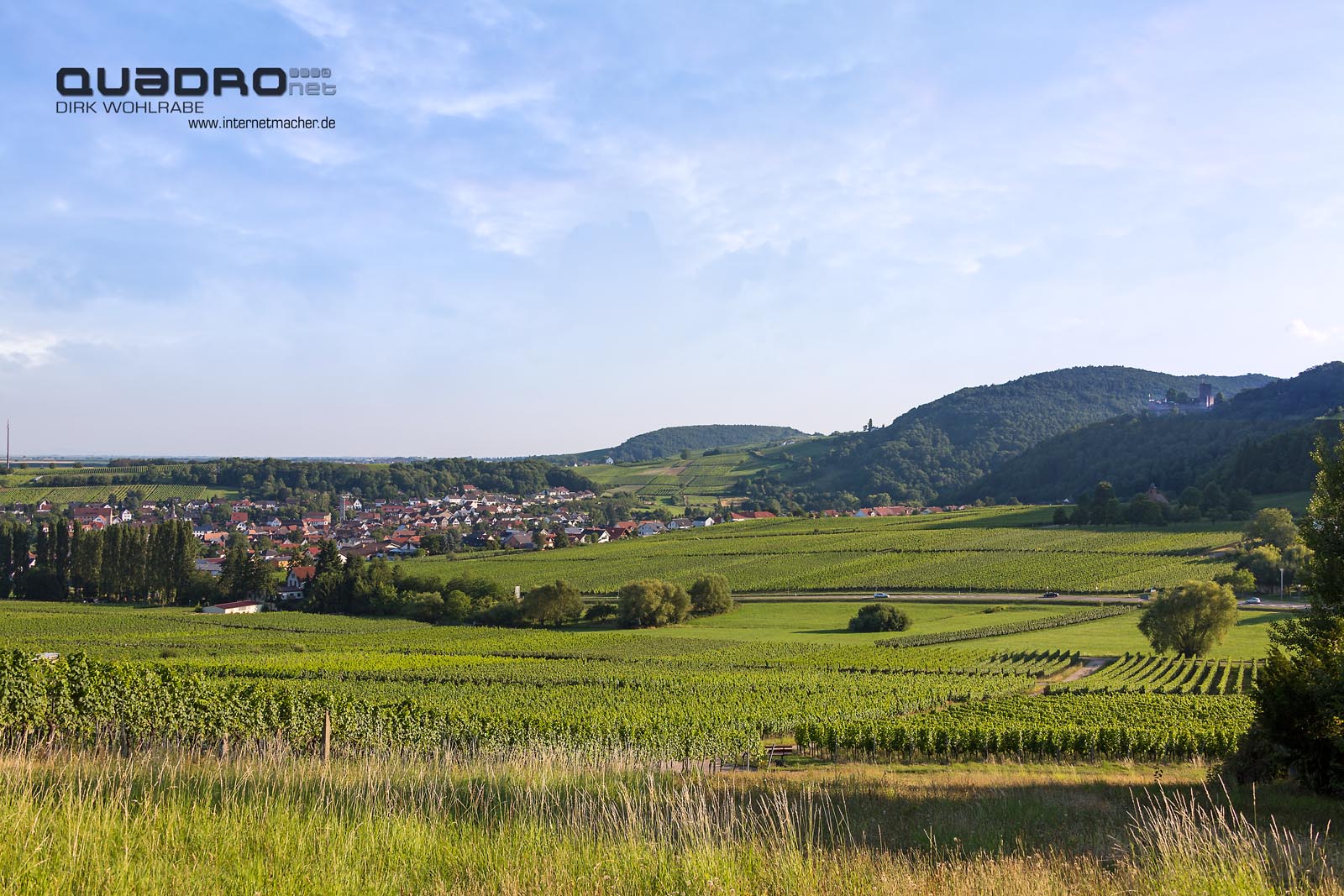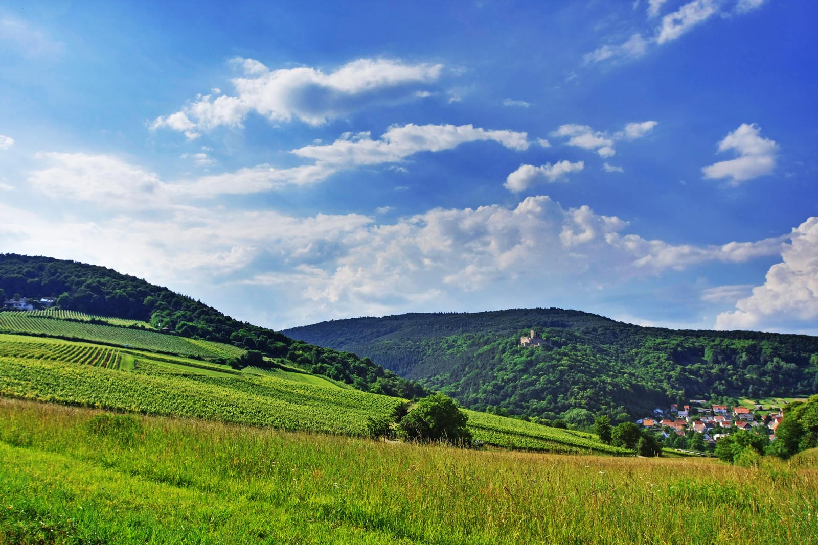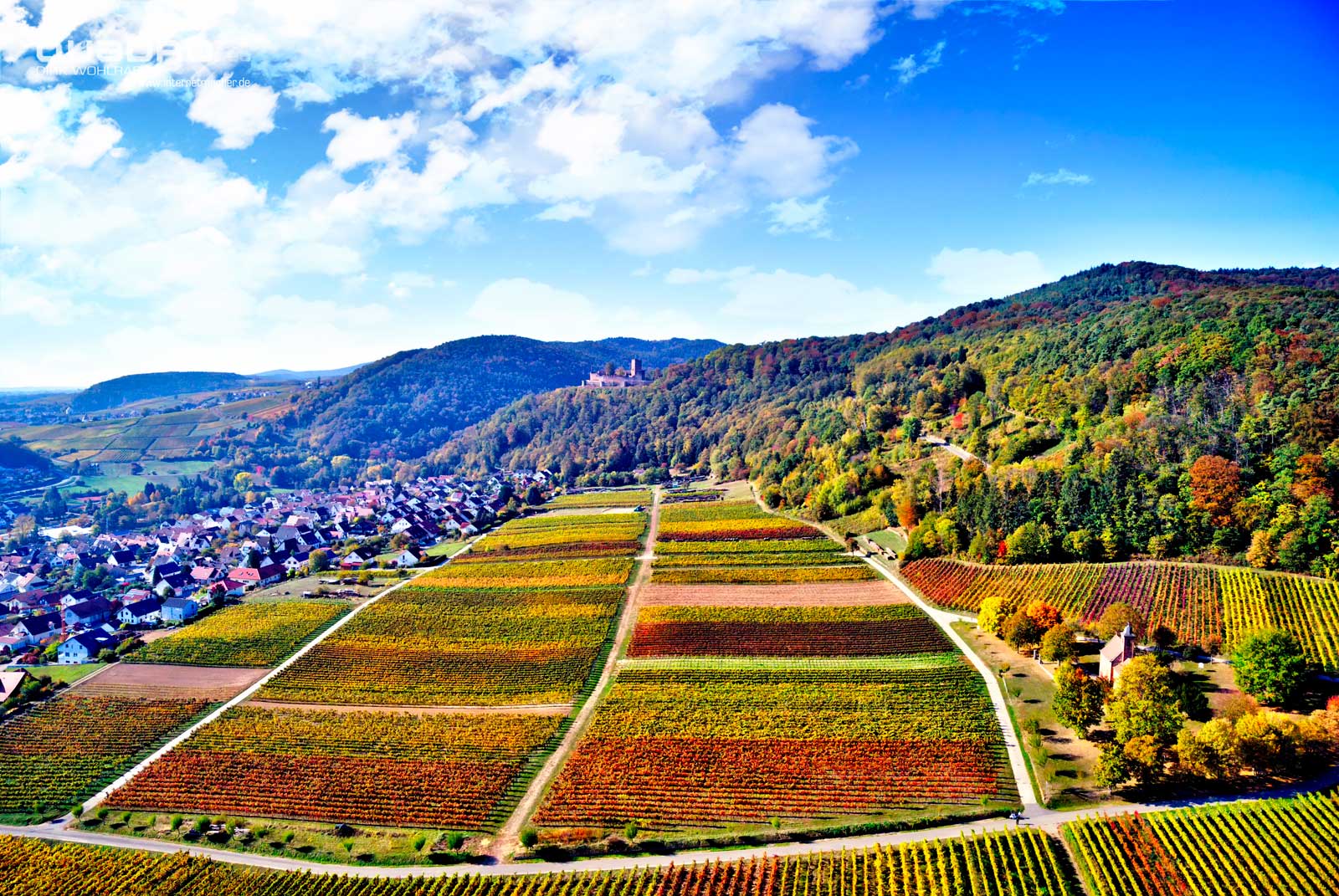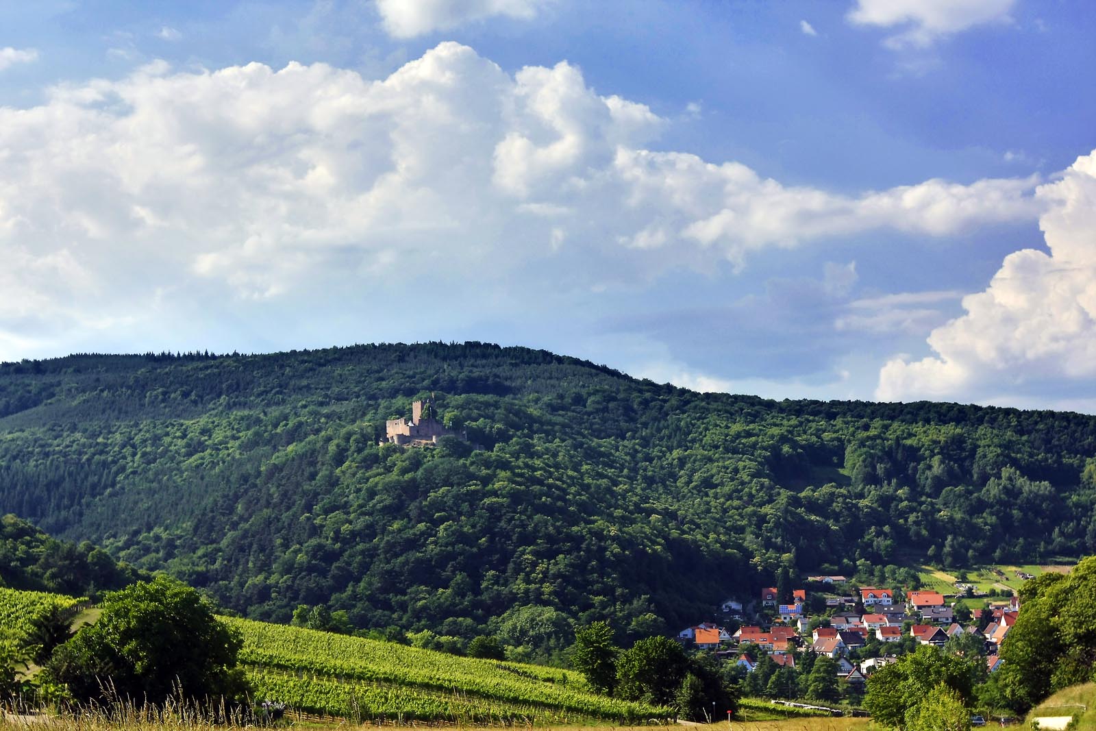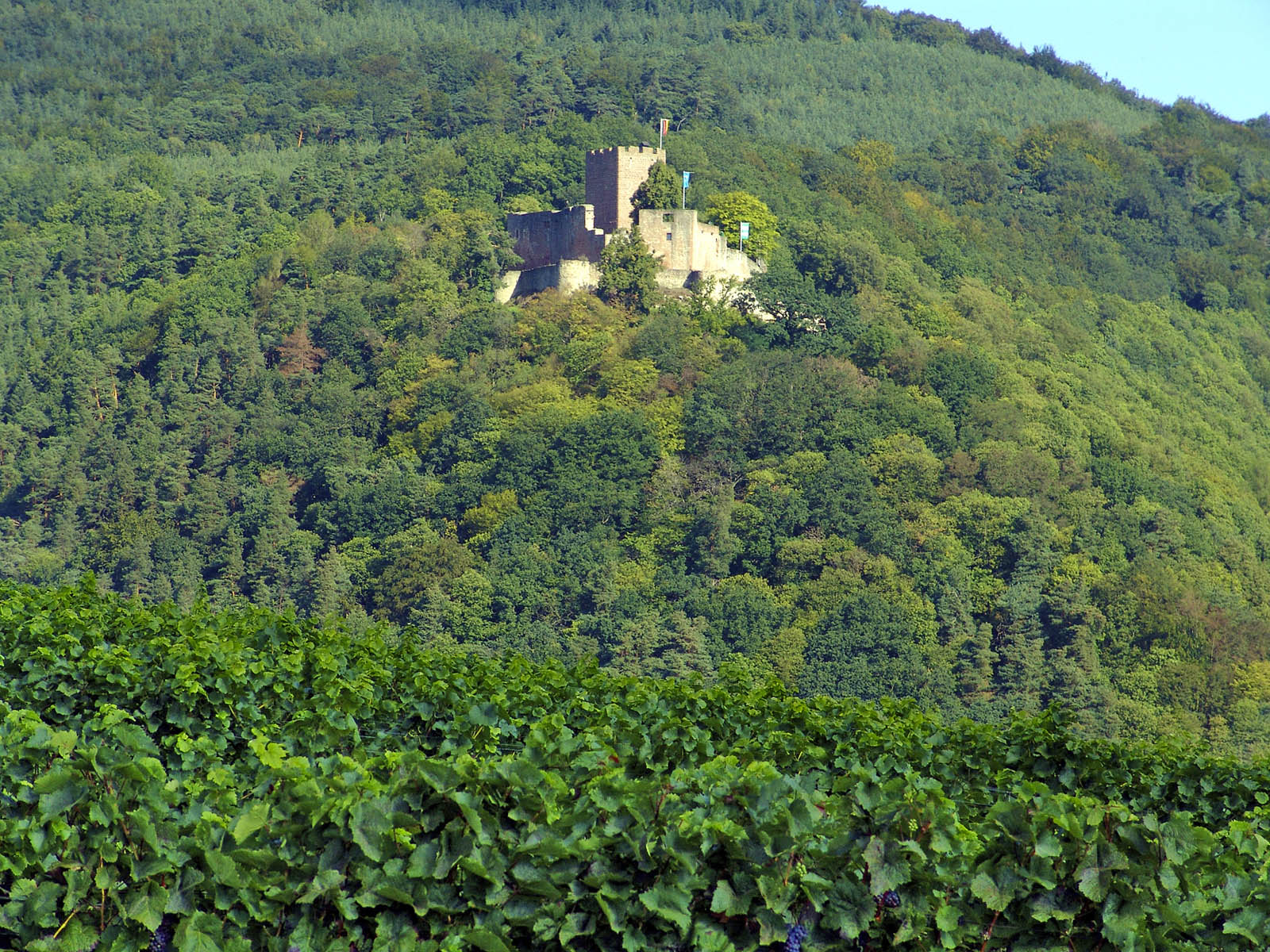 Am Fuße der Burg liegt der idyllische Weinort Klingenmünster. Die geschützte Lage am Rande des Pfälzerwald- Gebirges sorgt für ein besonders mildes Klima mit überdurchschnittlich viel Sonnenschein und läßt deshalb auch einen hervorragenden Wein gedeihen.