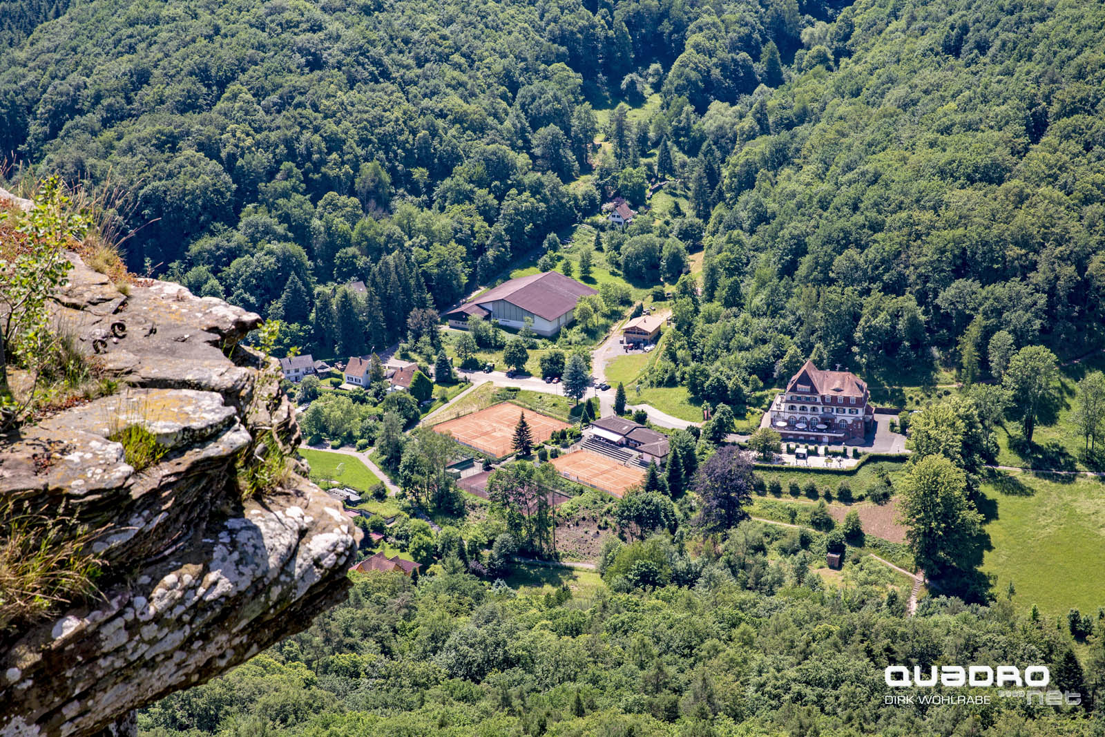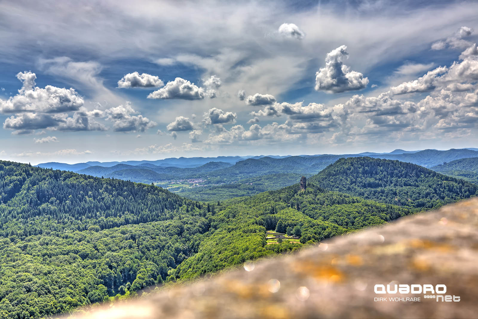 Die Höhenburg im pfälzischen Nordteil des Wasgaus auf der Kuppe des 494 m hohen Sonnenbergs steht auf einem dreifach gespaltenen Buntsandsteinfelsen, der 145 m lang, 40 m breit und 50 m hoch ist. Von dieser steinernen Basis stammt auch der Name der Burg, der „dreifacher Fels“ bedeutet. Beim Sonnenberg handelt es sich um einen der typischen oben abgerundeten Felsenberge des Wasgaus, der vom Südteil des Pfälzerwalds und dem Nordteil der Vogesen gebildet wird.